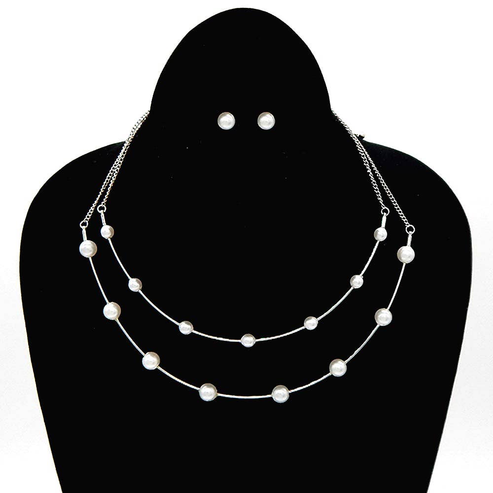 Double Layered Pearl Fashion Necklace Set