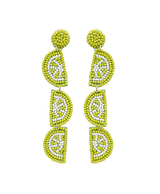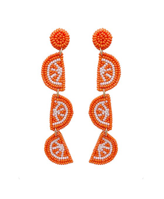 Slip on some juicy style with our Fruit 3 Drop Seed Bead Earrings. These playful statement earrings feature vibrant orange and lime slices made from colorful beads. With a convenient post closure, you can easily add a dash of humor and personality to any outfit. Let your fun-loving side shine with these quirky and unique earrings!