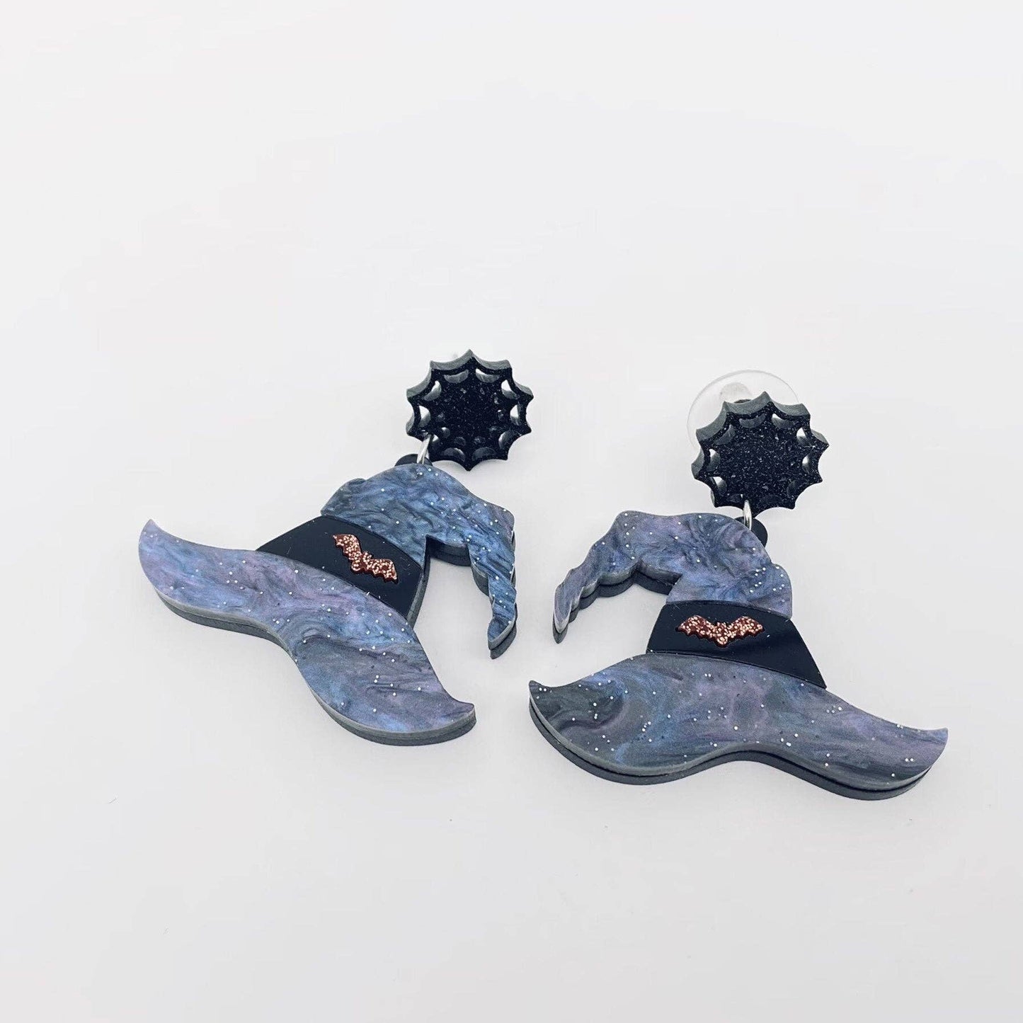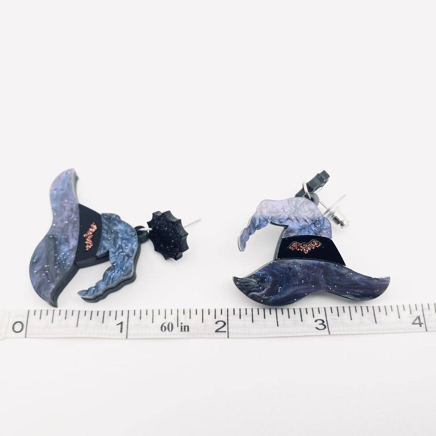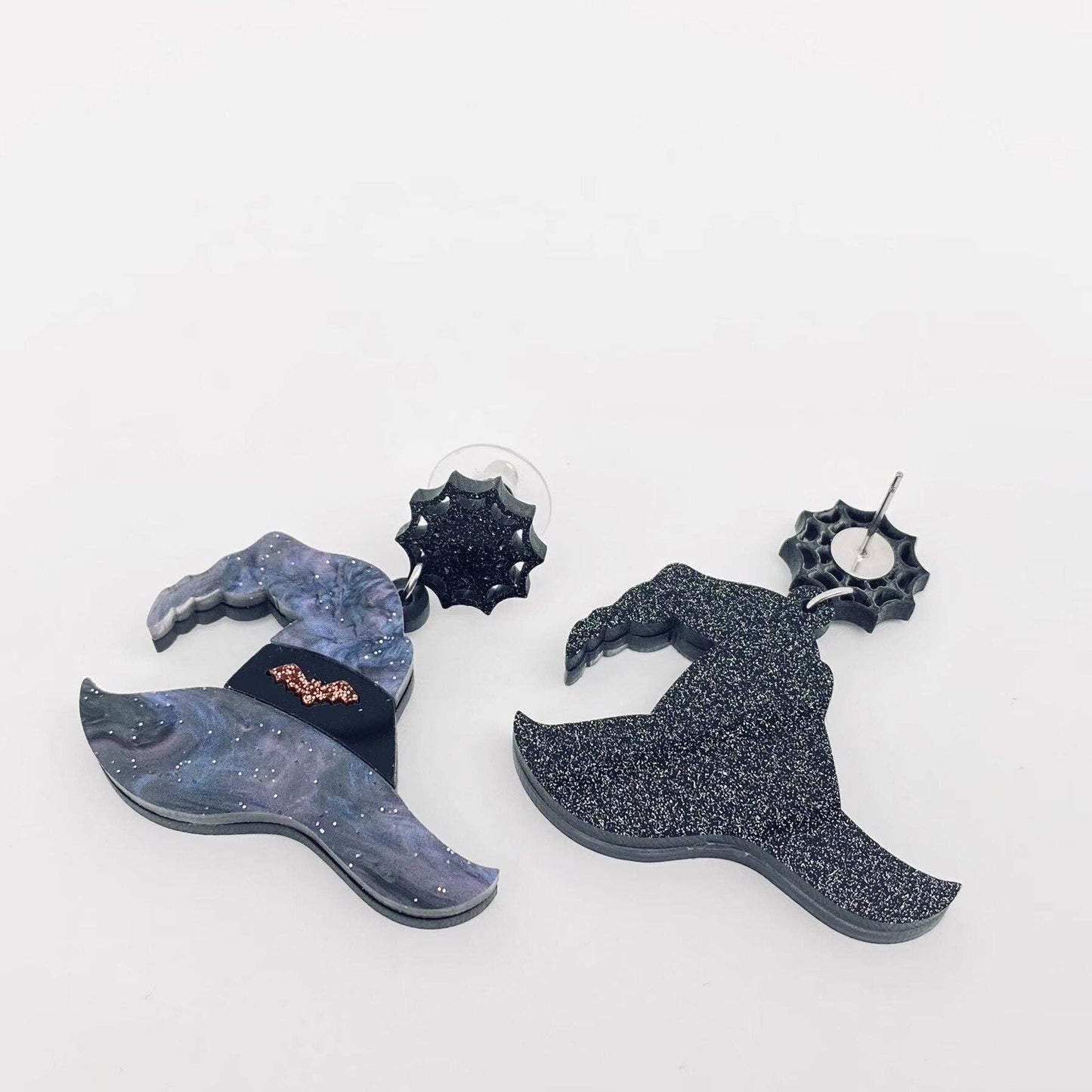 Halloween Bat Witch Hat Spider Web Post Earrings