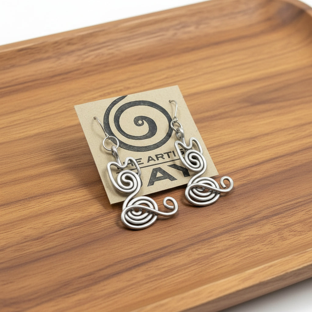 Adorable feline-inspired earrings crafted from hypoallergenic aluminum for sensitive skin. Surgical stainless steel ear wires with secure rubber stoppers ensure comfortable, all-day wear. Perfect for cat lovers seeking playful jewelry that doesn't compromise on quality or wearability. A charming addition to any accessory collection.