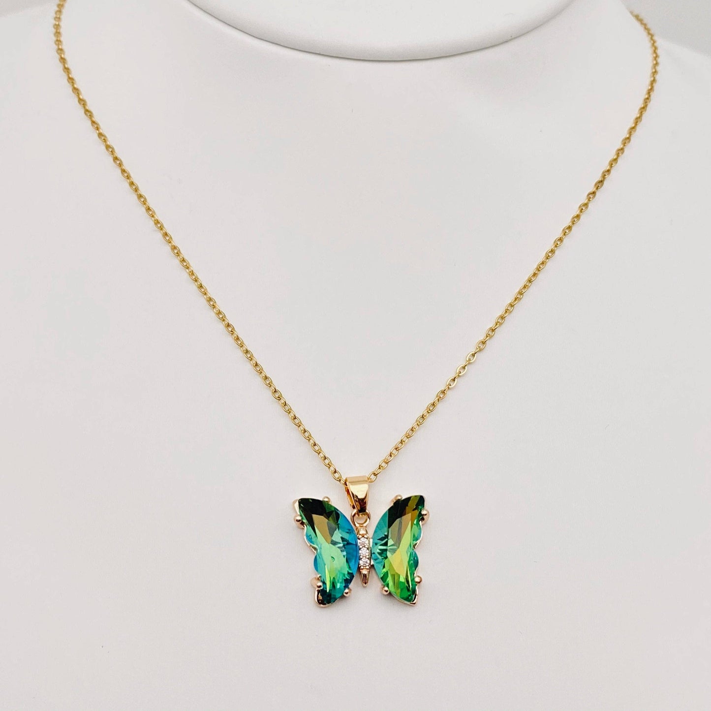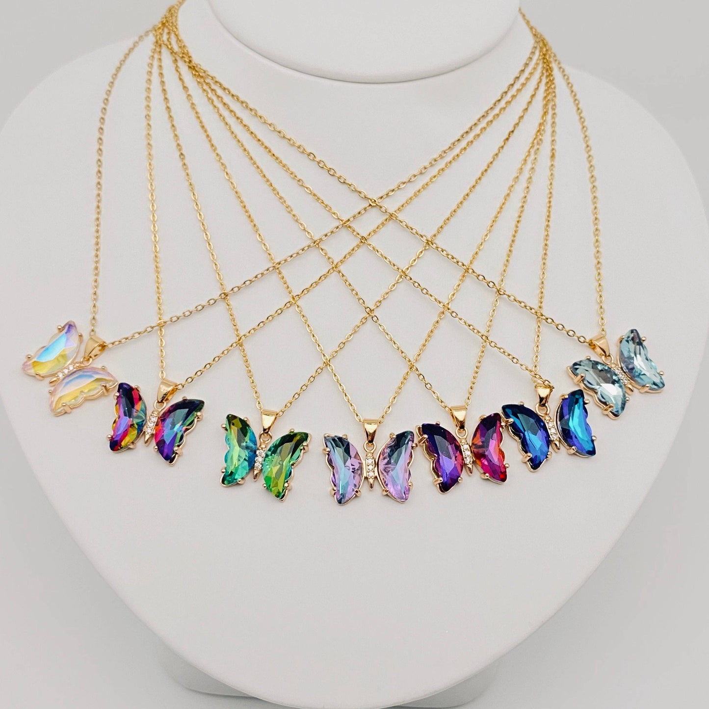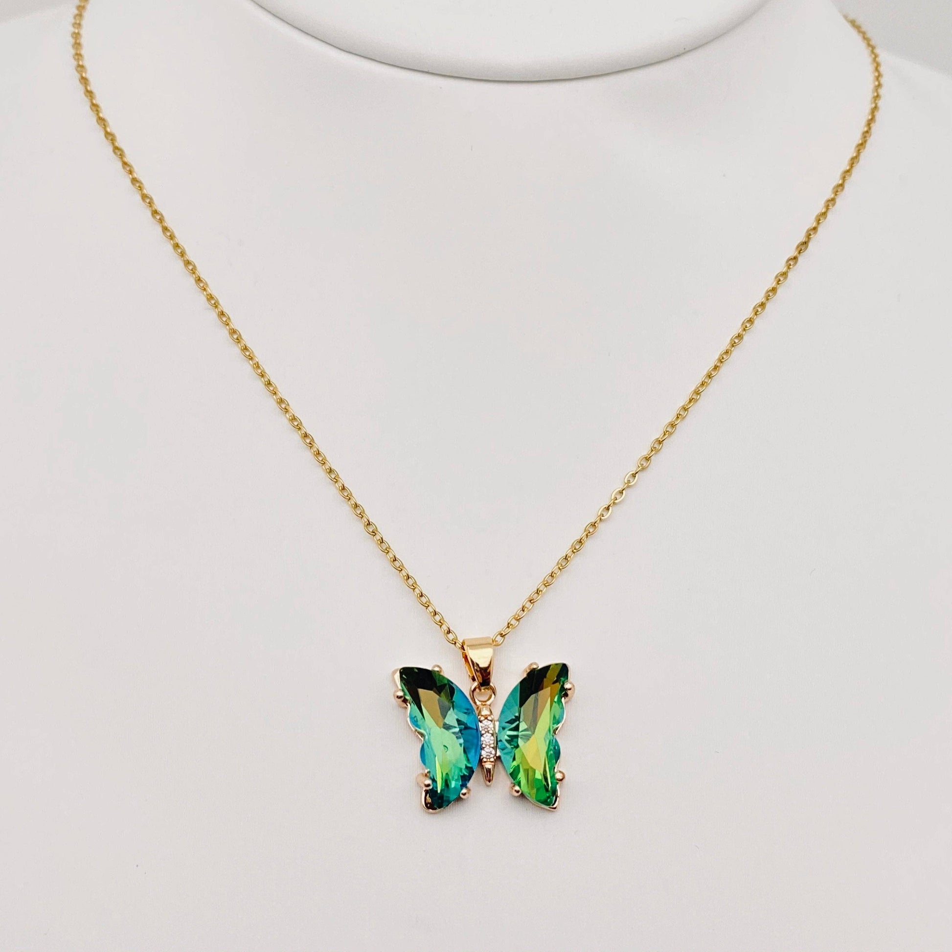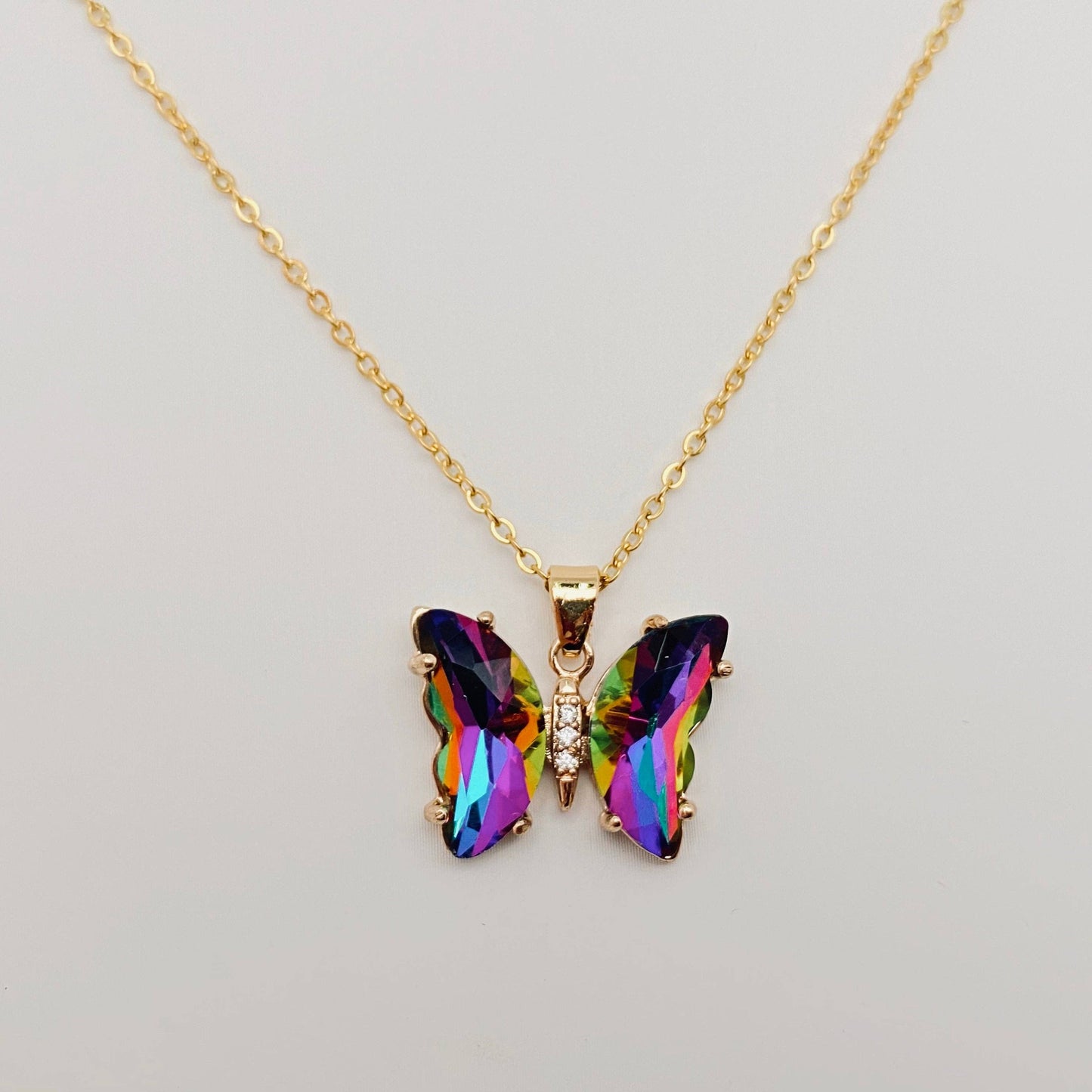 Elevate your style with our Glass Butterfly Pendant Necklace! The stunning glass butterfly pendant, complemented by a delicate gold chain, will add a pop of vibrant color to any outfit. Show off your love for nature and fashion with this unique piece.