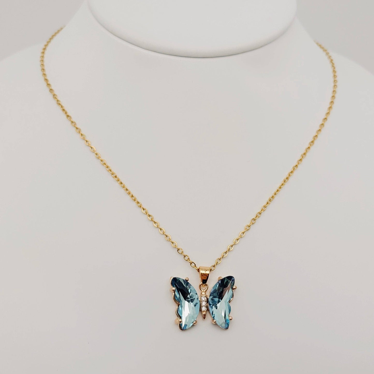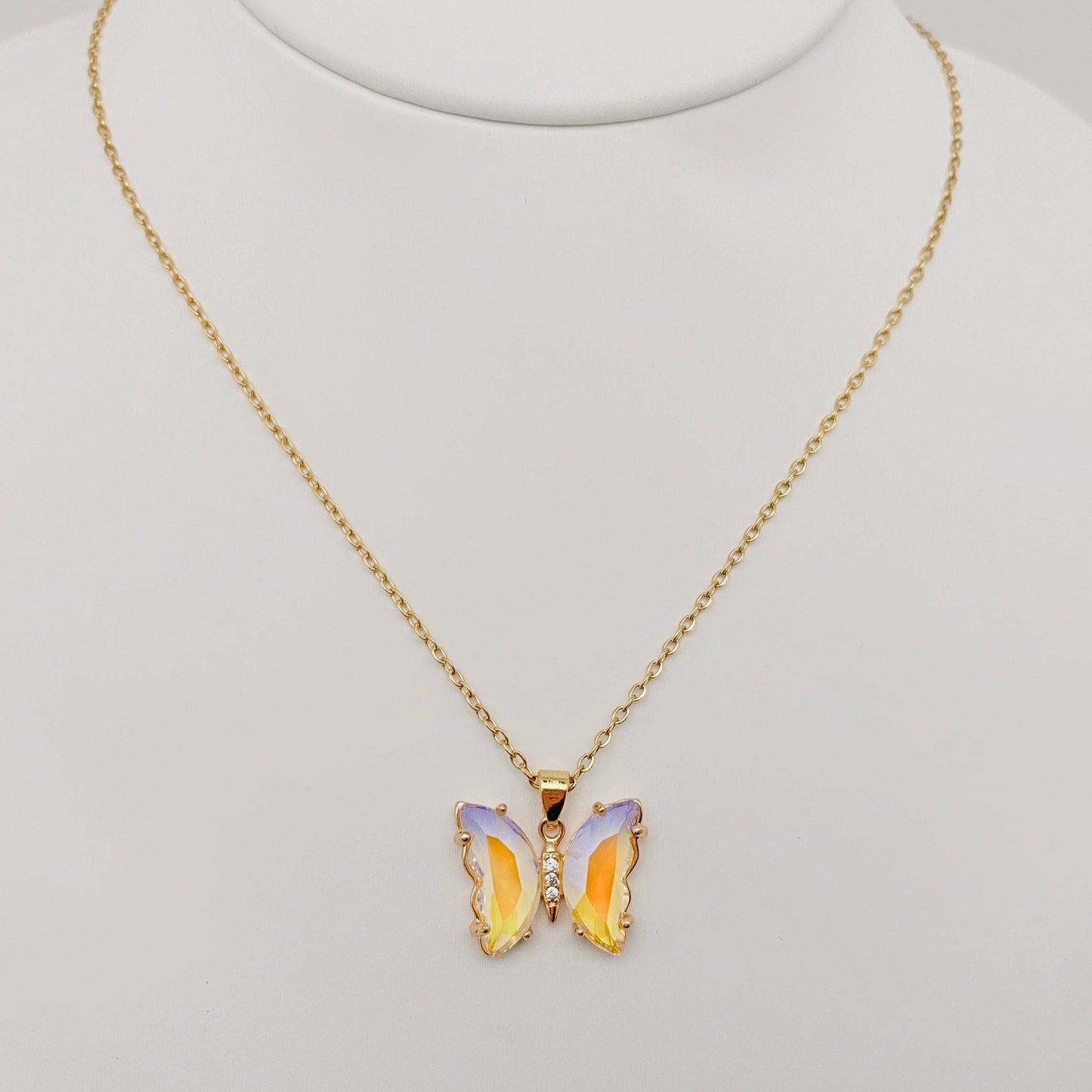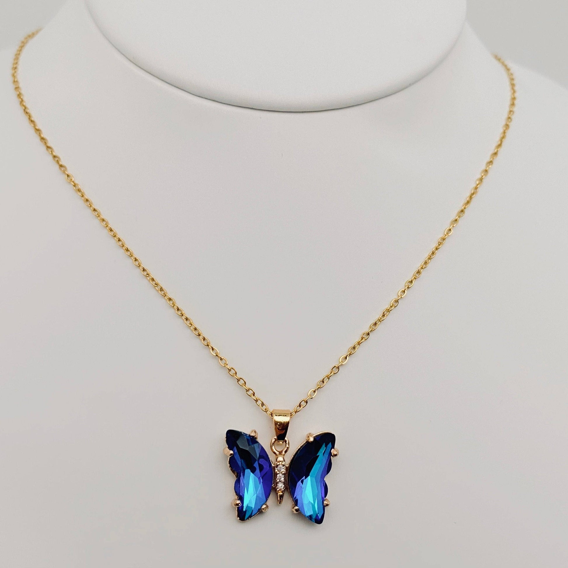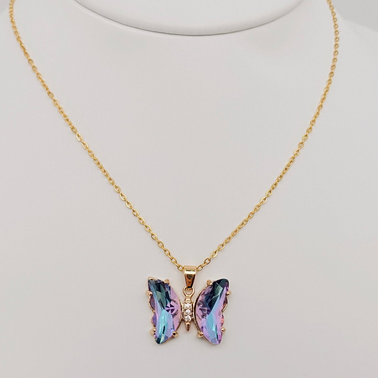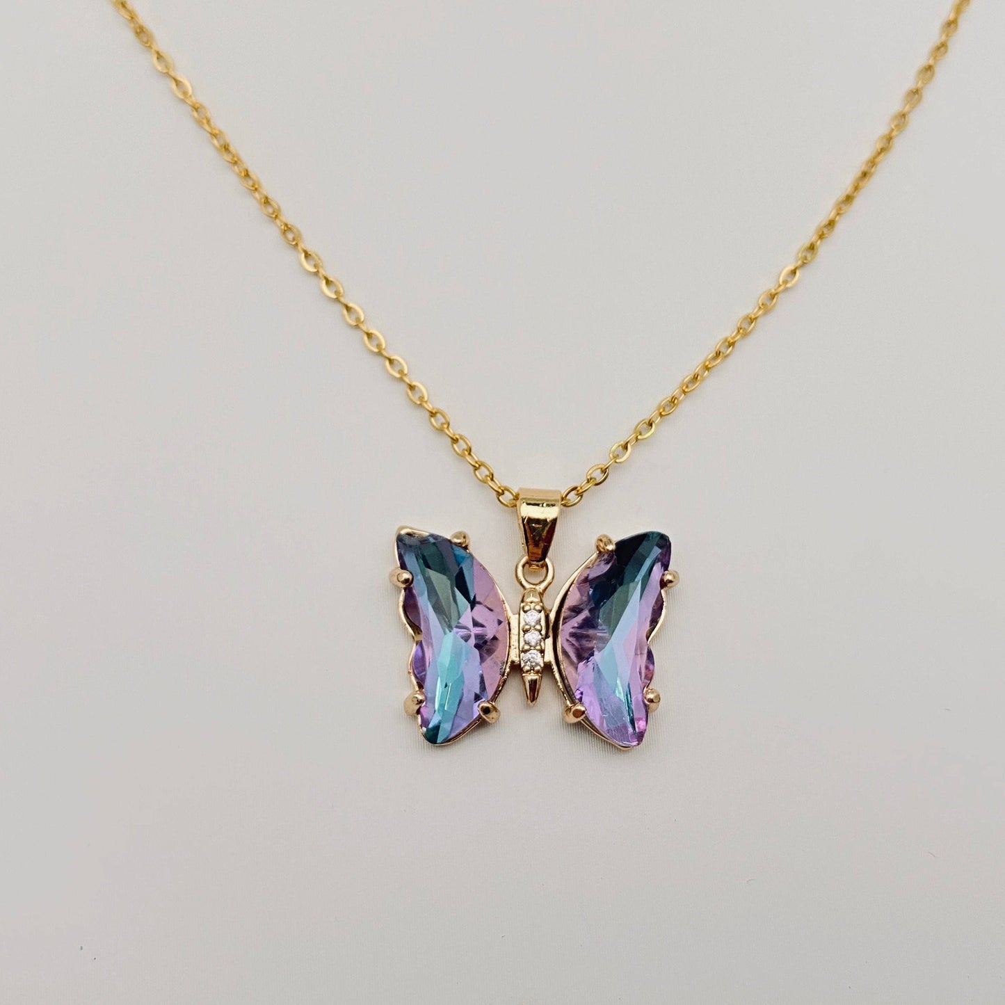 Elevate your style with our Glass Butterfly Pendant Necklace! The stunning glass butterfly pendant, complemented by a delicate gold chain, will add a pop of vibrant color to any outfit. Show off your love for nature and fashion with this unique piece.