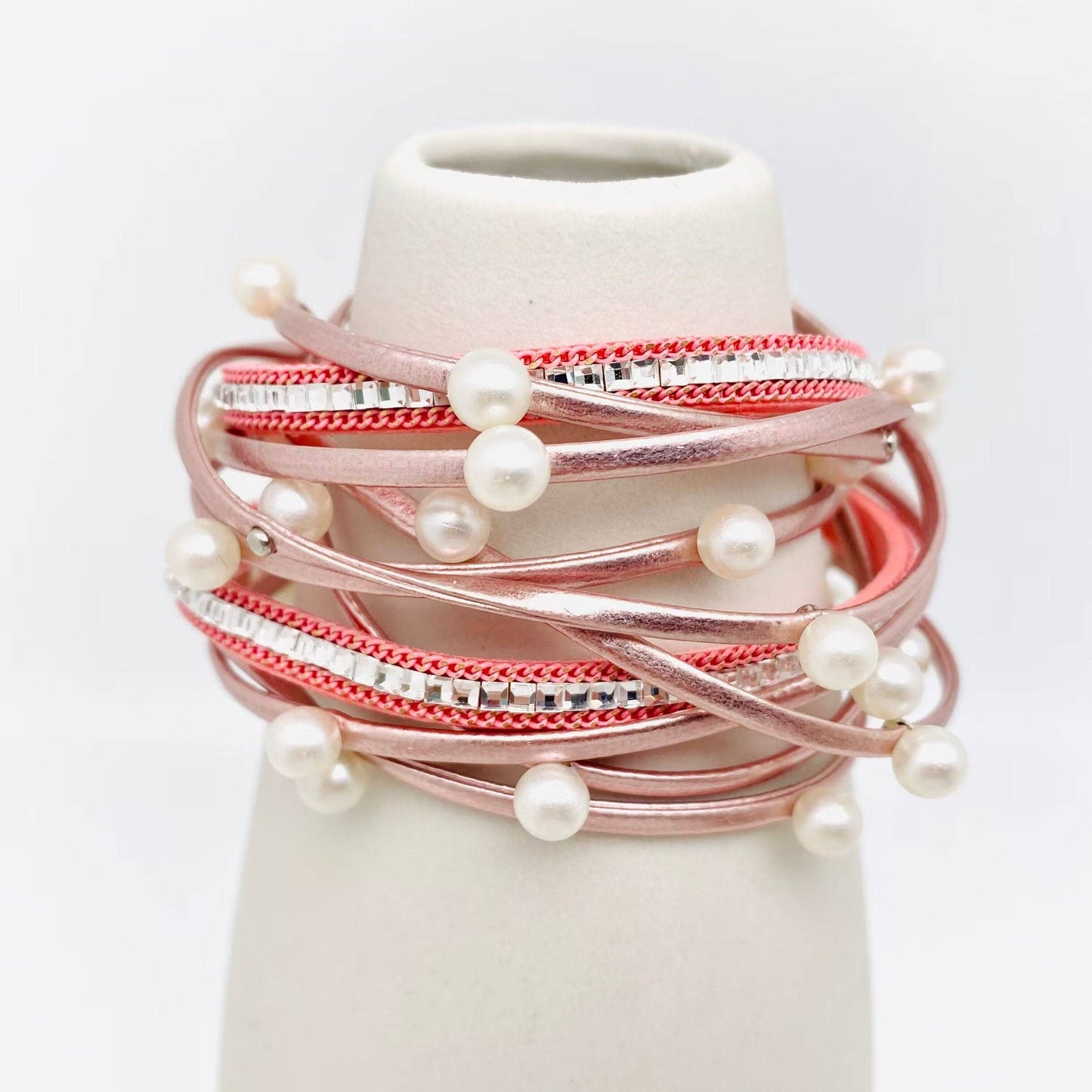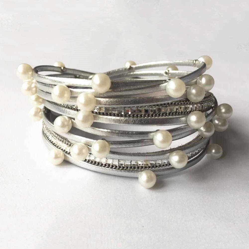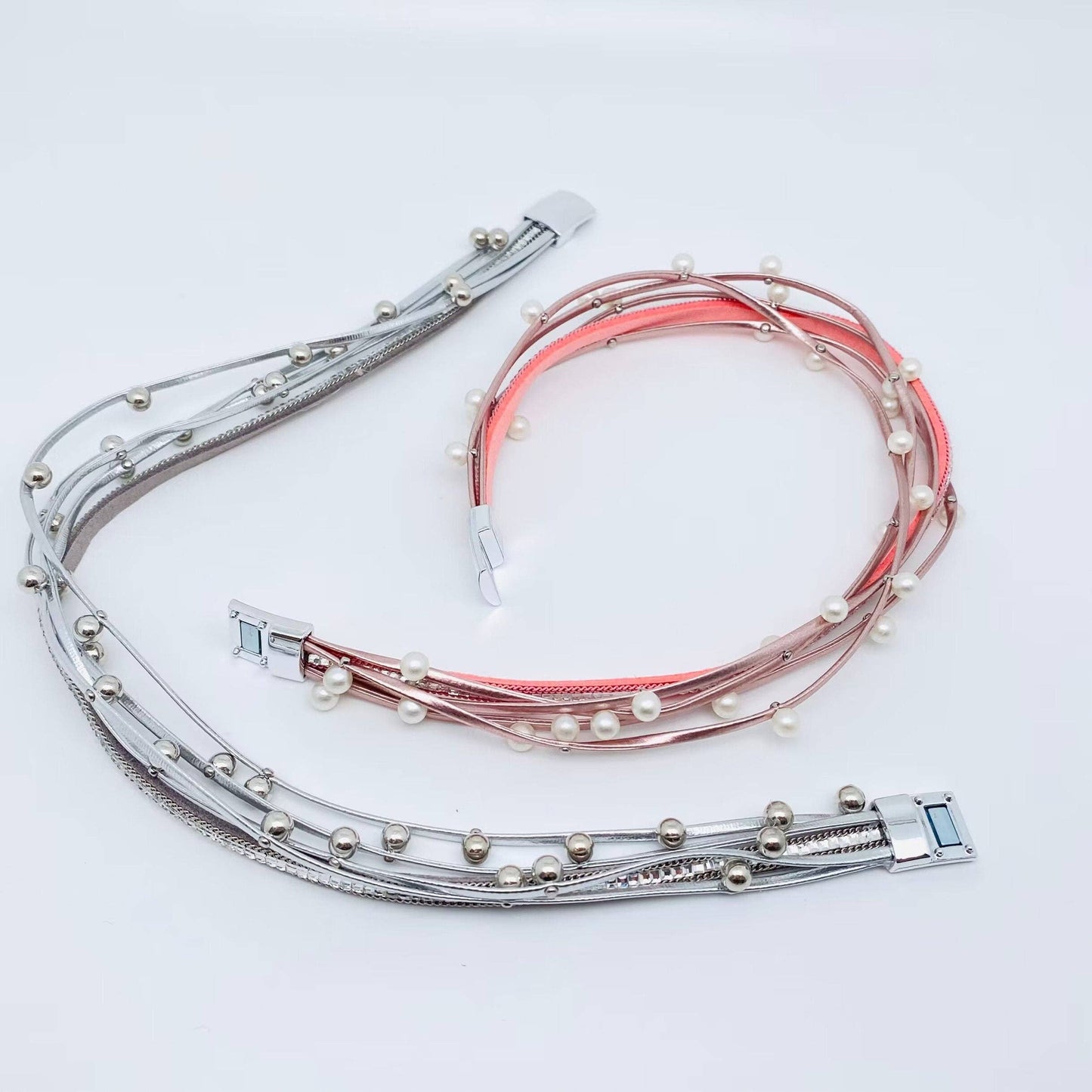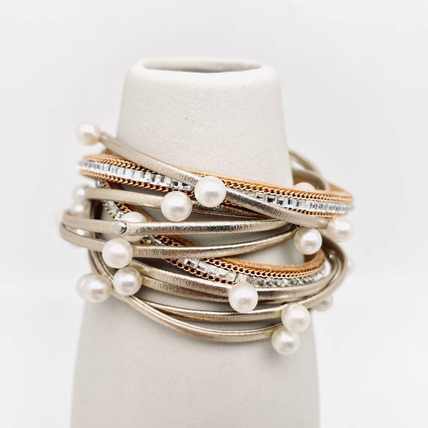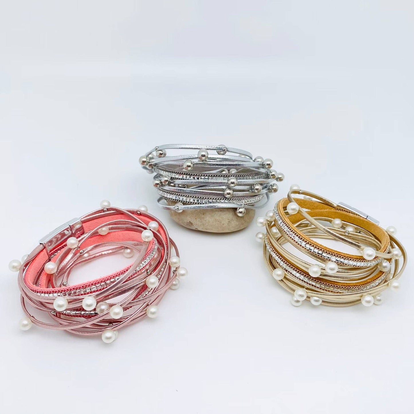 This stunning Pearl Layered Magnetic Leather Bracelet effortlessly combines elegance and convenience. The layered design and magnetic closure make it easy to put on and take off, while the pearls add a touch of sophistication to any outfit. Elevate your style and simplify your life with this must-have accessory.