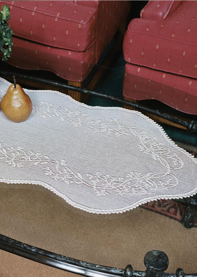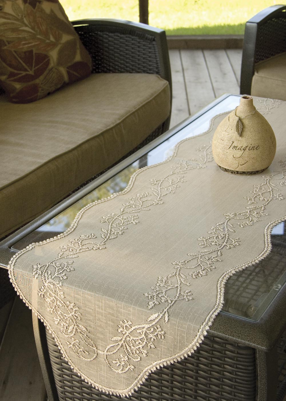 Trailing floral vines on a very sheer background -- simple and striking, airy and adaptable. The background mesh of Sheer Divine has a texture resembling fine linen, embellished with small vine motifs.